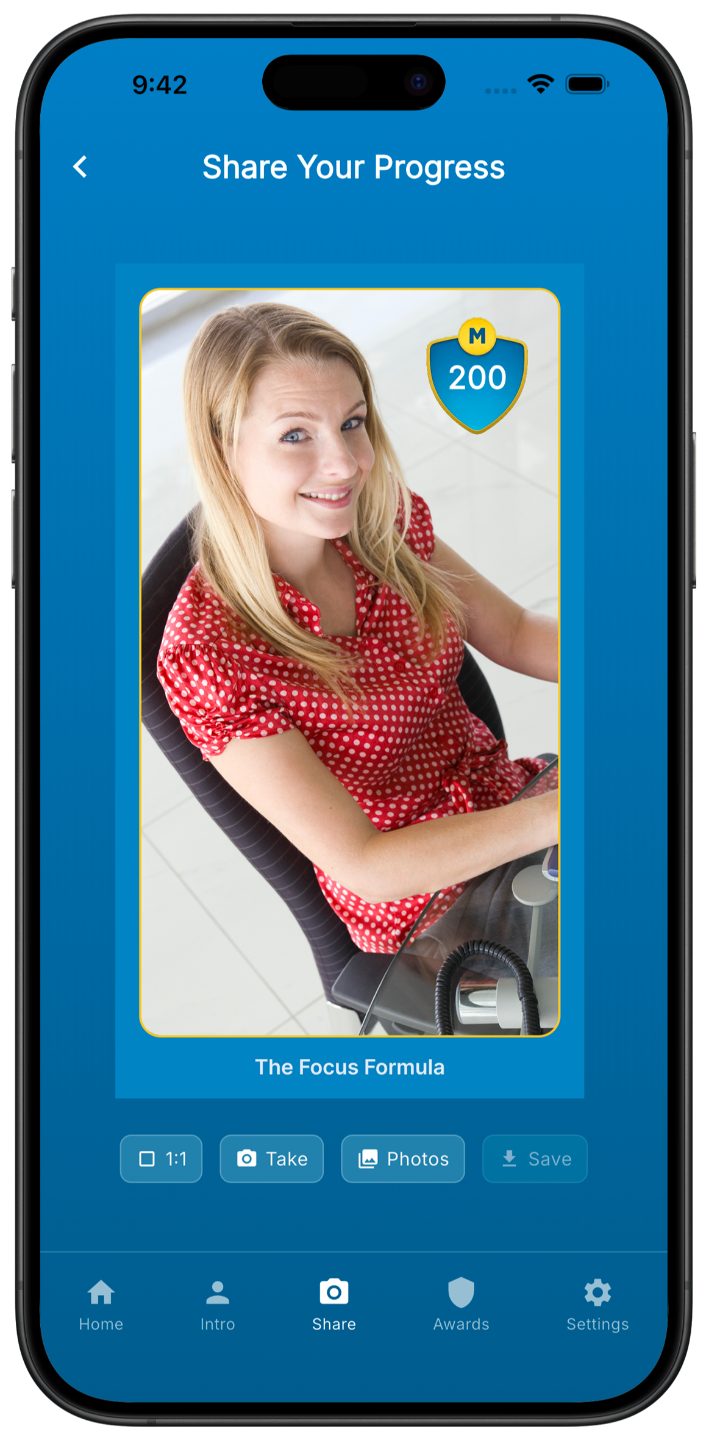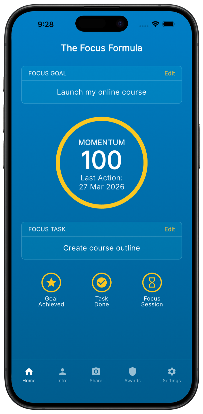 The Focus Formula app helps you choose your most important goal, take meaningful daily action, and build visible momentum in a world full of distraction.